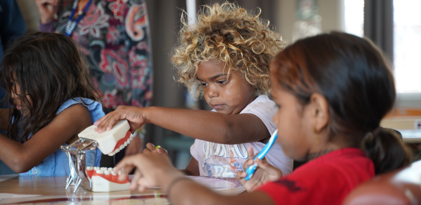 Teaching dental health practices in the Yankunytjatjara language and engaging children in fun learning activities improved oral health speech and literacy and extended the use of the Yankunytjatjara language into a new domain – oral health. Activities were delivered in collaboration with the Indulkana and Mimili communities, and more than 180 people participated.