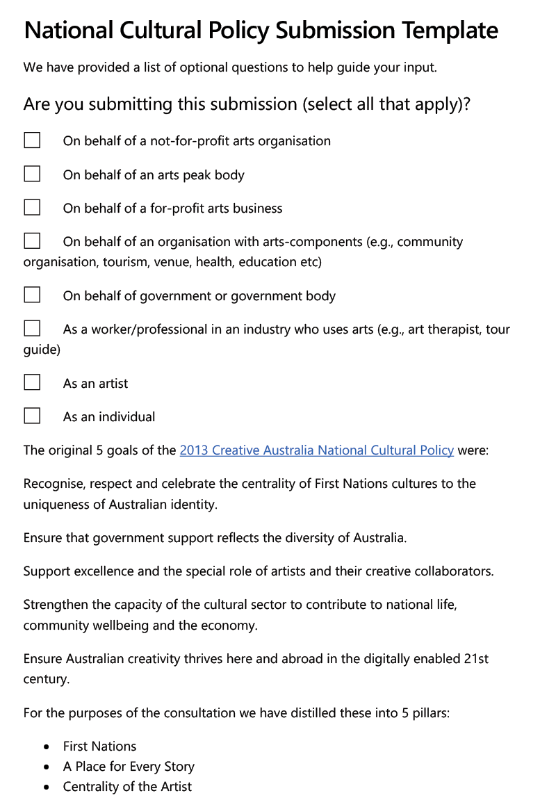 National Cultural Policy submission template