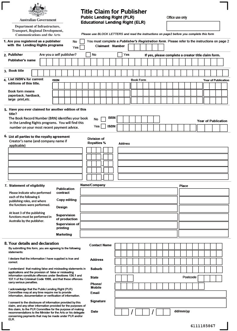 Public Lending Right (PLR)—Title claim for publisher